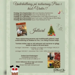 Förutom vår mysiga camping & den härliga miljön så har vi en kanonmysig resturang på ön. Njut av god mat i fin miljö till härlig underhållning på PAUS. Boka in er NU! ( kontakt@paus.se )